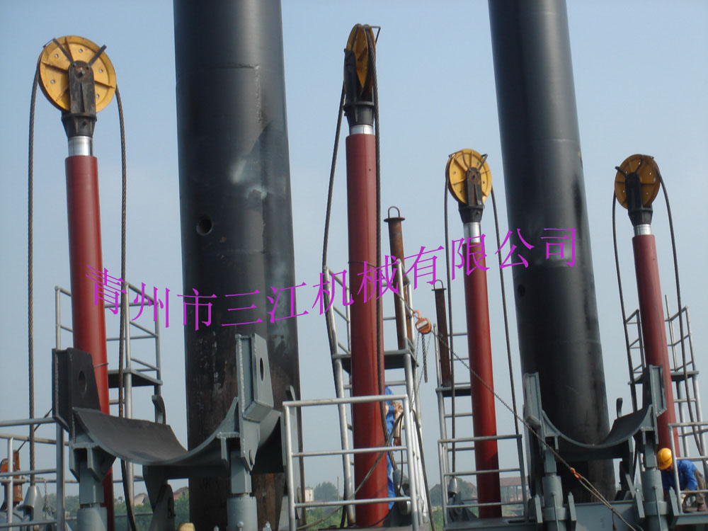 上述絞吸式挖泥船雙軛架式重型鋼樁臺(tái)車結(jié)構(gòu)緊湊合理,承載力大,具有很強(qiáng)的軌道變形適應(yīng)能力。行走滾輪在行走過程中可根據(jù)軌道的情況自行調(diào)節(jié)位置,##各行走滾輪始終與軌道接觸,均勻承載,有效地延長了行走滾輪的適用壽命。同時(shí)將外力均勻地傳遞給船體結(jié)構(gòu)。采用了緩沖裝置,使得##行走軛架和第二行走軛架的行走滾輪分別接觸軌道的下表面和上表面,當(dāng)外界風(fēng)浪力較大時(shí)緩沖裝置可以避免行走滾輪直接撞擊軌道,從而起到緩沖作用。適用于大型絞吸式挖泥船,使其即使在比較惡劣的施工條件下也可以進(jìn)行施工。