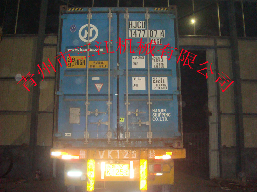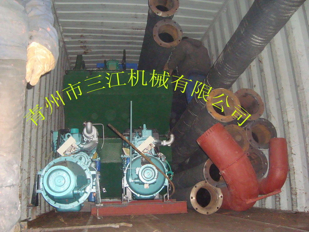 發(fā)往尼日利亞的抽沙船裝箱發(fā)貨。本設(shè)備為射吸式抽沙設(shè)備,抽沙系統(tǒng)為一套8英寸專(zhuān)用沙礫泵,每小時(shí)抽沙能力達(dá)到200立方米,排出距離達(dá)到500米。為了適應(yīng)尼日利亞多雨的氣候環(huán)境,該設(shè)備在整個(gè)作業(yè)面上加裝了防雨棚,有效增加了設(shè)備的防雨防銹能力,也極大的增加了操作人員的舒適度。本設(shè)備設(shè)計(jì)緊湊,整個(gè)設(shè)備可裝入一個(gè)40尺的超高柜,便于長(zhǎng)途海運(yùn),有效節(jié)省海運(yùn)費(fèi)。圖為該設(shè)備正在裝箱中。