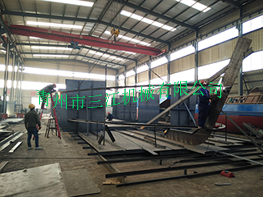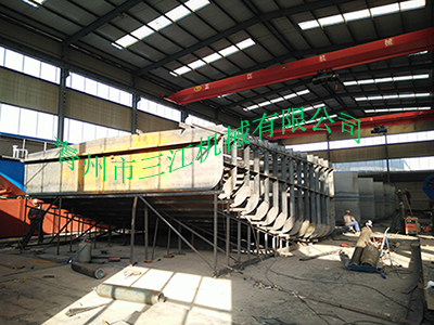 本設(shè)備為分體式鋼質(zhì)皮帶自卸運沙船,額定運載能力為500噸,滿載排水量為906噸。滿載行駛速度為每小時20公里,