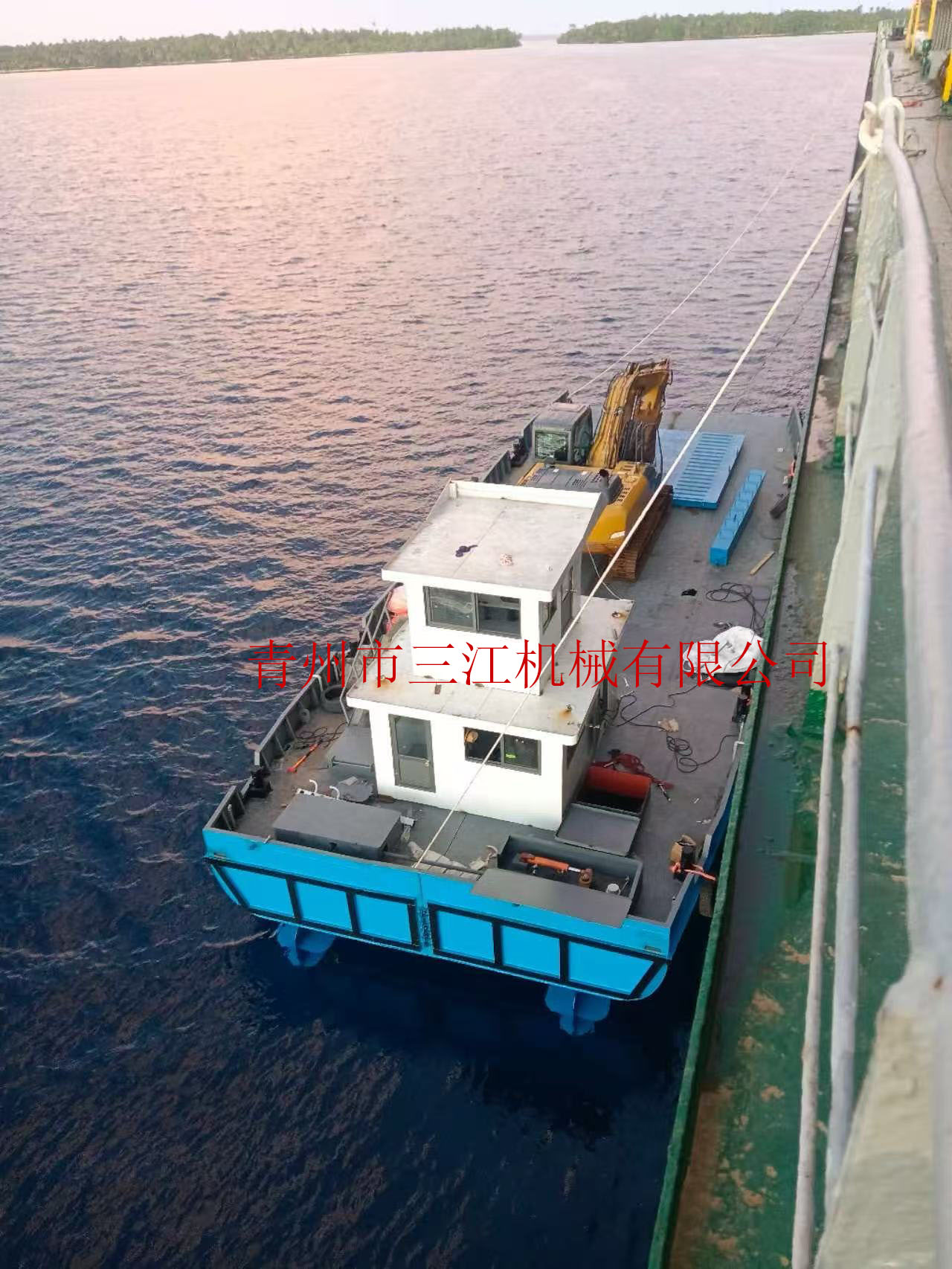2023年,中鐵集團(tuán)承接了密克羅尼西亞一處原始島嶼的綜合開發(fā)工程。該島風(fēng)景秀美,椰林成蔭、白沙碧海,但基礎(chǔ)設(shè)施幾乎為零——無港口、無淡水、無電力,甚至連基本的物資卸載平臺(tái)都不存在。項(xiàng)目首期建設(shè)需運(yùn)輸約3萬噸建材與設(shè)備上島,然而由于島嶼近岸比降為8:1,大型運(yùn)輸船只無法靠岸,只能在距離島岸2-3公里的深水區(qū)停泊。傳統(tǒng)方式如小型一體接駁船,穩(wěn)定性差、裝卸效率低,無法滿足施工要求。