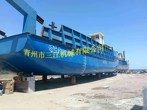 鋼質(zhì)帶跳板自航甲板駁船,可以滿足近海水深不超過2米的淺水水域貨物接駁要求,或者內(nèi)河與近海的聯(lián)運(yùn)。
