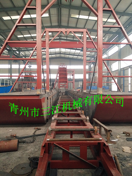 正在制造中的出口朝鮮的挖掘深度25米、工作量每小時(shí)100立方米挖沙及二次水洗挖沙船。此設(shè)備工作于朝鮮民主主義共和國境內(nèi)大同江上,與我公司200噸皮帶運(yùn)沙船配套使用。