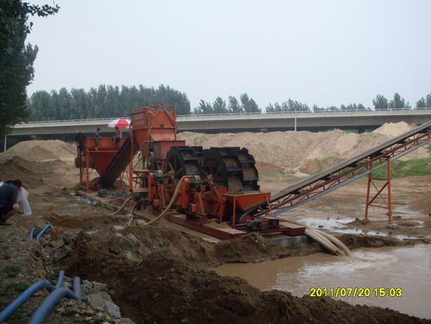 本設(shè)備由上料斗、上料傳送機(jī)、滾筒篩、制砂機(jī)、兩道輪式洗沙機(jī)組成,可用于風(fēng)化山沙、含鵝卵石和土比較多的河沙等物料的處理。每小時(shí)的處理量為60-80立方米。