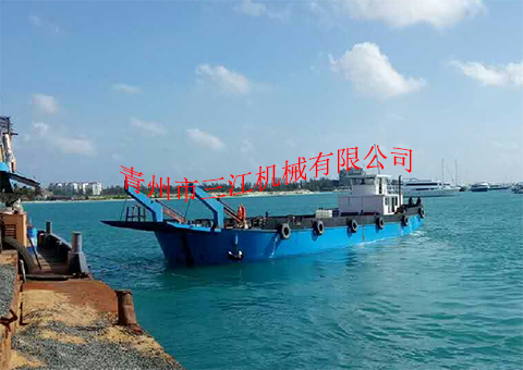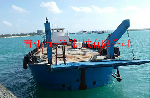 本設備是我公司于2017年6月份為馬爾代夫共和國制造的自航甲板駁,根據(jù)當?shù)責o固定航道、水深不大于2米的具體工況情況設計定做,吃水深度2米,滿載航行速度8節(jié)。本設備適用于近海三級航區(qū)的車輛、人員、散雜貨、集裝箱等的接駁運輸。具體噸位,可根據(jù)客戶要求定做。